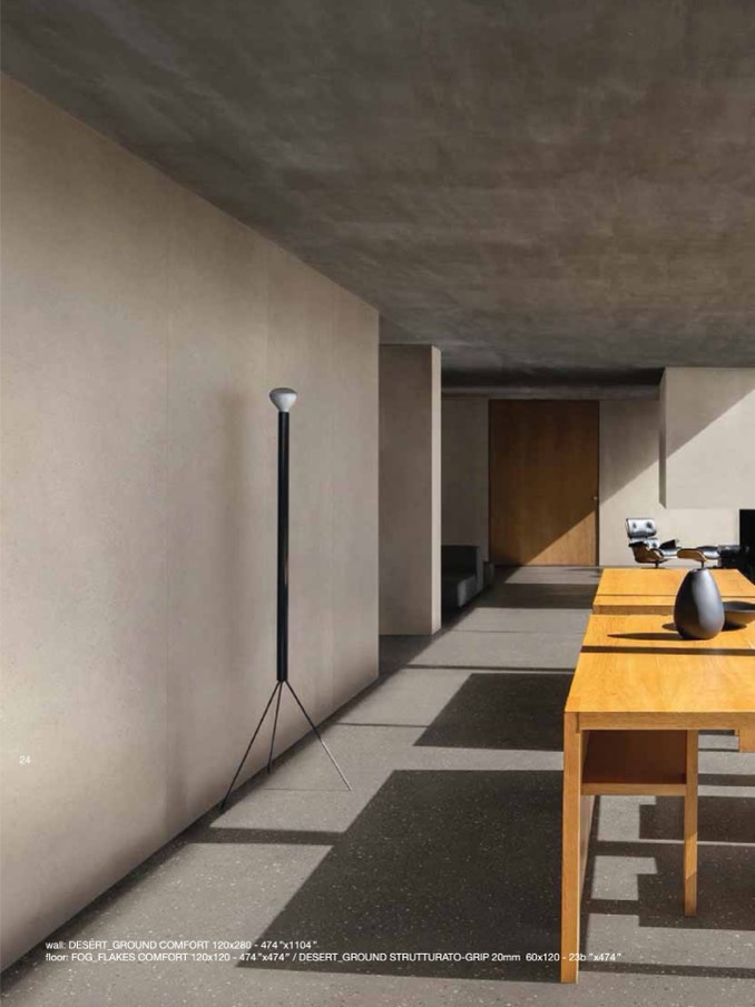 floor: FOG_FLAKES COMFORT 120x120 - 474”x474” / DESERT_GROUND STRUTTURATO-GRIP 20mm 60x120 - 23b”x474”