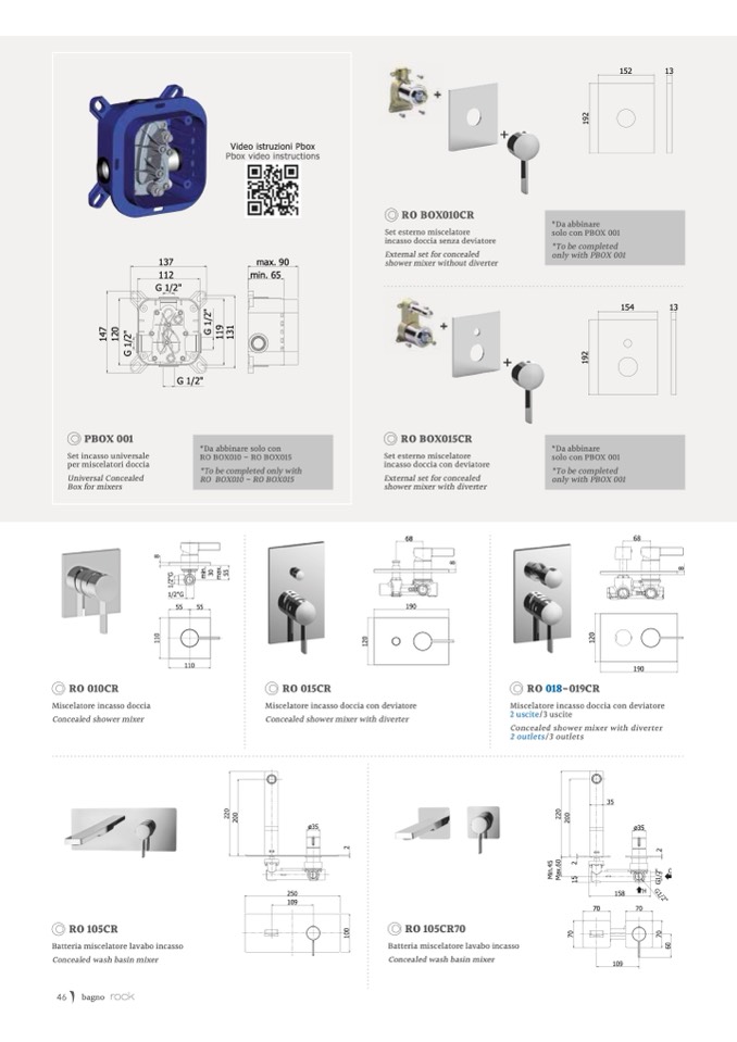 Batteria miscelatore lavabo incasso