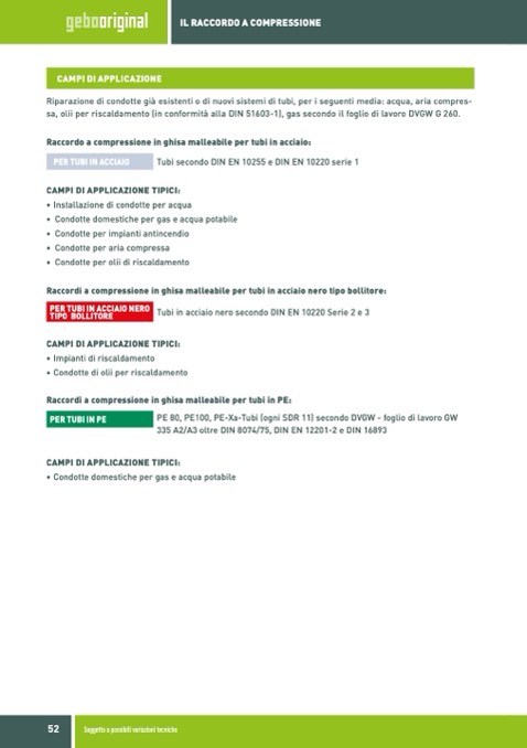 Riparazione di condotte già esistenti o di nuovi sistemi di tubi, per i seguenti media: acqua, aria compres-