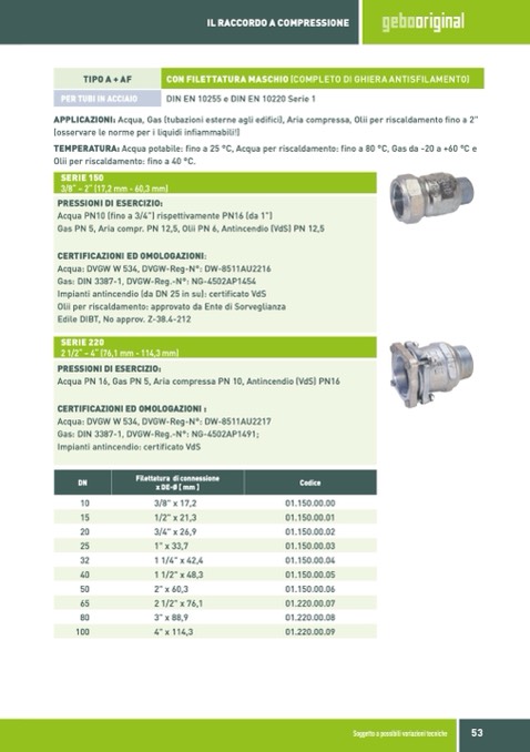 APPLICAZIONI: Acqua, Gas (tubazioni esterne agli edifici), Aria compressa, Olii per riscaldamento fino a 2”