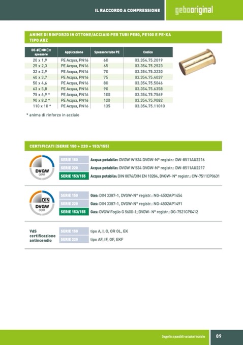 Acqua potabile: DIN 8076/DIN EN 10284, DVGW- N° registr.: CW-7511CP0631