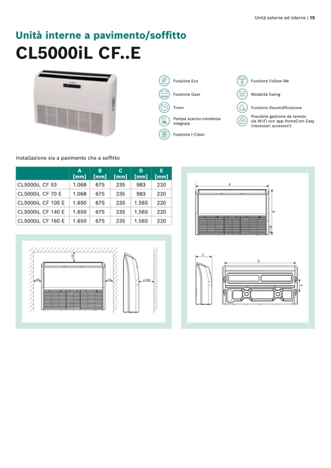 Installazione sia a pavimento che a soffitto