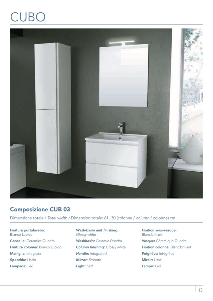 Dimensione totale / Total width / Dimension totale: 61+30 (colonna / column / colonne) cm