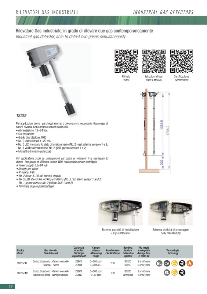 Per applicazioni come i parcheggi interrati o dovunque sia necessario rilevare gas di