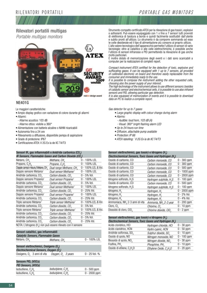 o asfissianti. Può essere equipaggiato con 1 o fino a 7 sensori tutti provvisti