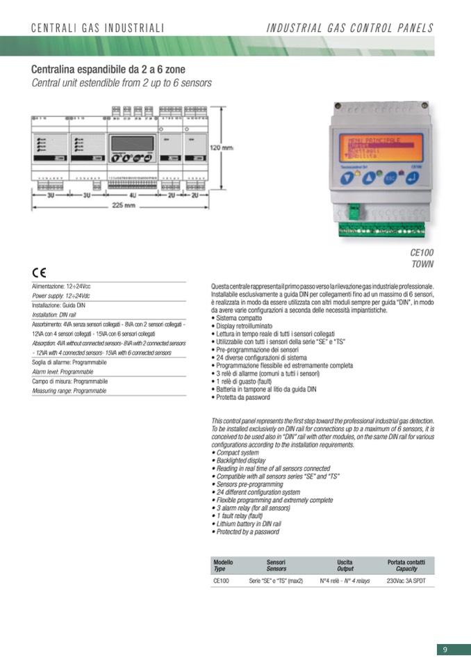 • 3 relè di allarme (comuni a tutti i sensori)