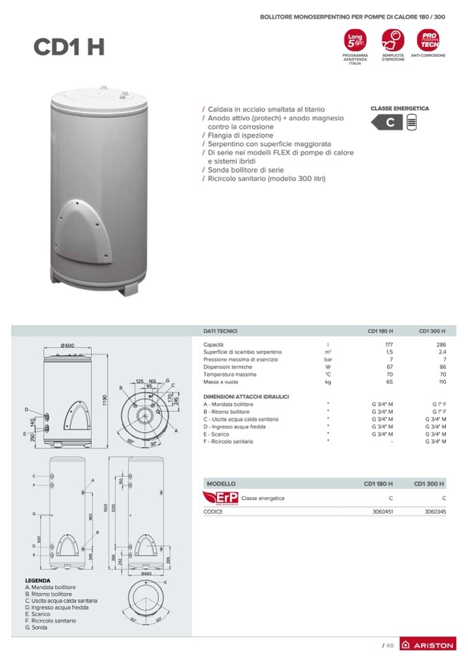 BOLLITORE MONOSERPENTINO PER POMPE DI CALORE 180 / 300
