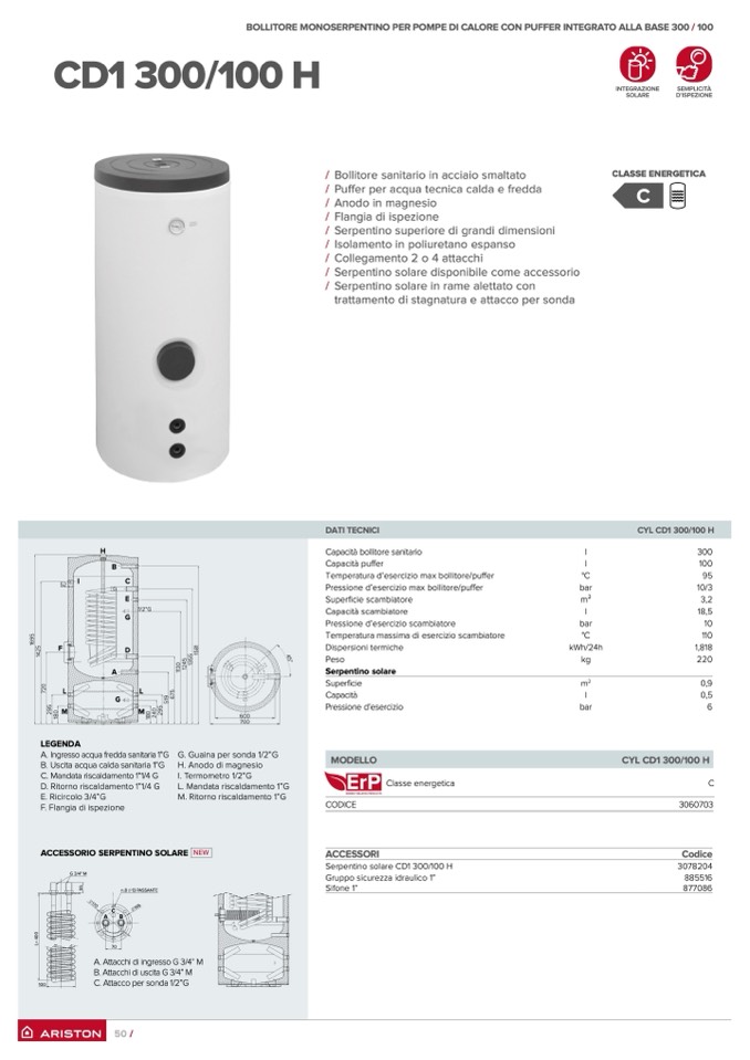 BOLLITORE MONOSERPENTINO PER POMPE DI CALORE CON PUFFER INTEGRATO ALLA BASE 300 / 100