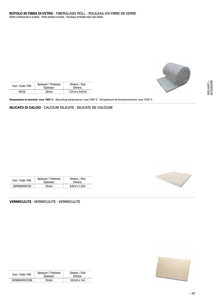 Temperatura di esercizio: max 1100° C - Operating temperature: max 1100° C -Température de fonctionnement: max 1100° C