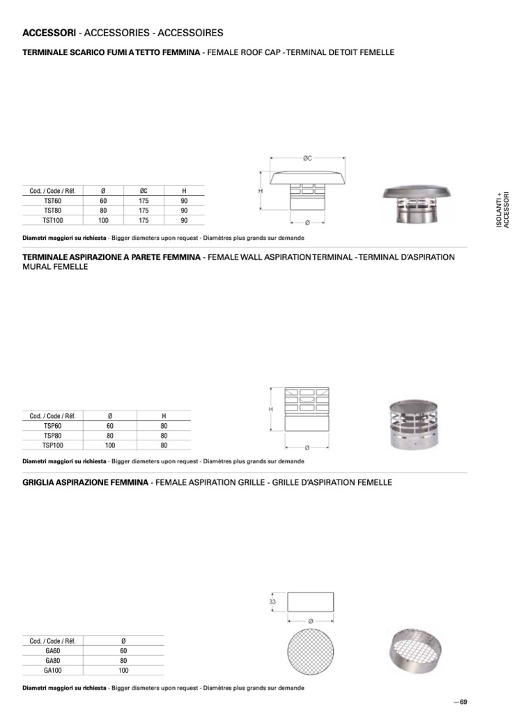 Diametri maggiori su richiesta - Bigger diameters upon request - Diamètres plus grands sur demande