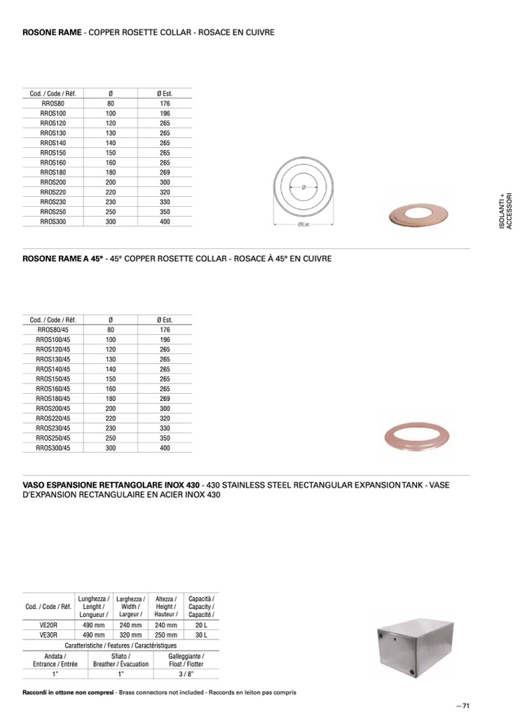 Raccordi in ottone non compresi - Brass connectors not included - Raccords en leiton pas compris