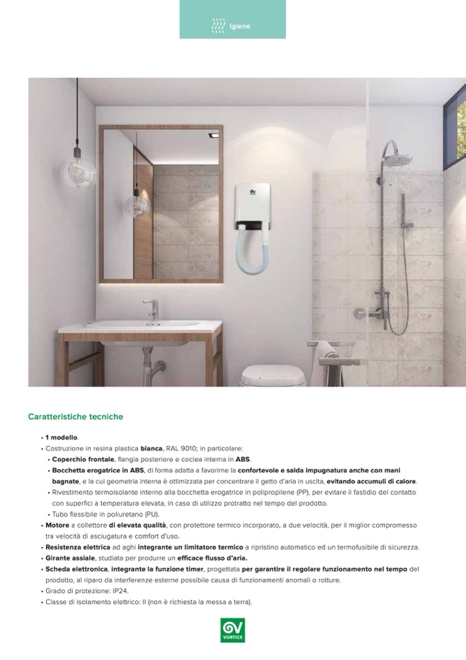 bagnate, e la cui geometria interna è ottimizzata per concentrare il getto d’aria in uscita, evitando accumuli di calore.