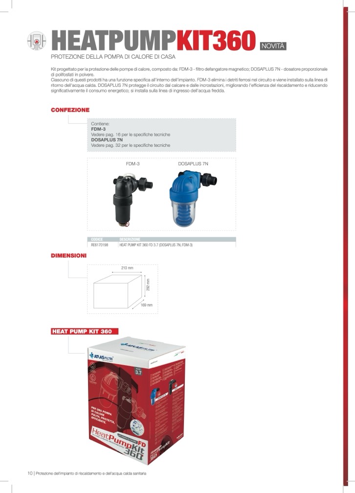 Kit progettato per la protezione delle pompe di calore, composto da: FDM-3 - filtro defangatore magnetico; DOSAPLUS 7N - dosatore proporzionale
