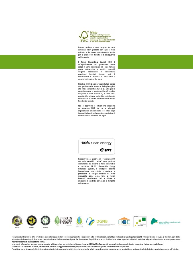 The GreenBuilding Rating 2012 è redatto in base alle nostre migliori conoscenze tecniche e applicative ed è pubblicato da Kerakoll Spa in allegato al Catalogo/listino 2012. Tutti i diritti sono riservati. © Kerakoll. Ogni diritto