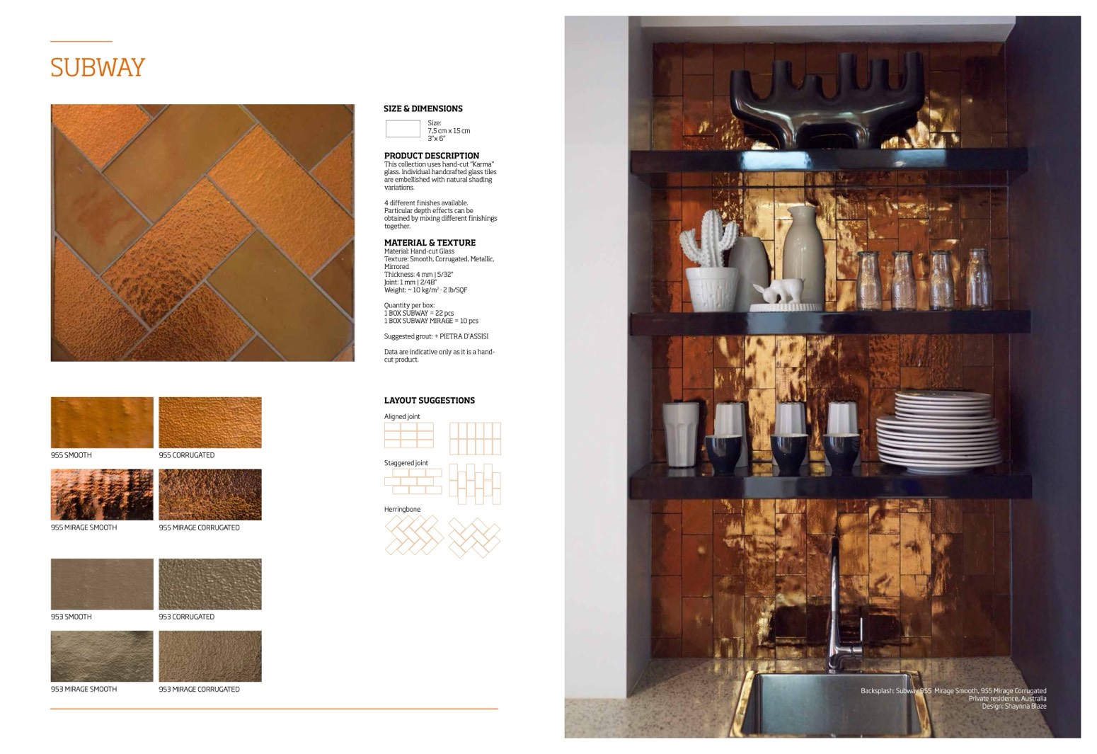 Backsplash: Subway 955 Mirage Smooth, 955 Mirage Corrugated