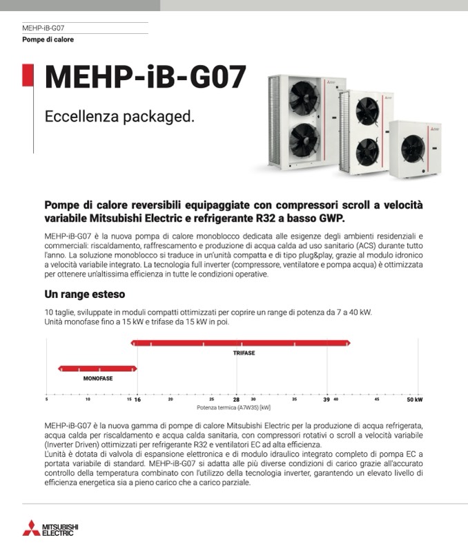 MEHP-iB-G07 è la nuova gamma di pompe di calore Mitsubishi Electric per la produzione di acqua refrigerata,
