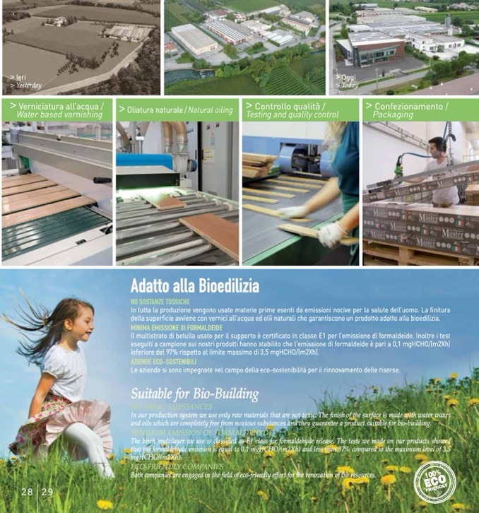 della superfificie avviene con vernici all’acqua ed olii naturali che garantiscono un prodotto adatto alla bioedilizia.