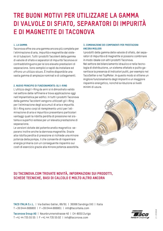 di valvole di sfiato e separatori di impurità Taconova si