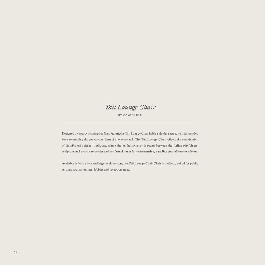 Designed by award-winning duo GamFratesi, the Tail Lounge Chair holds a playful nature, with its rounded