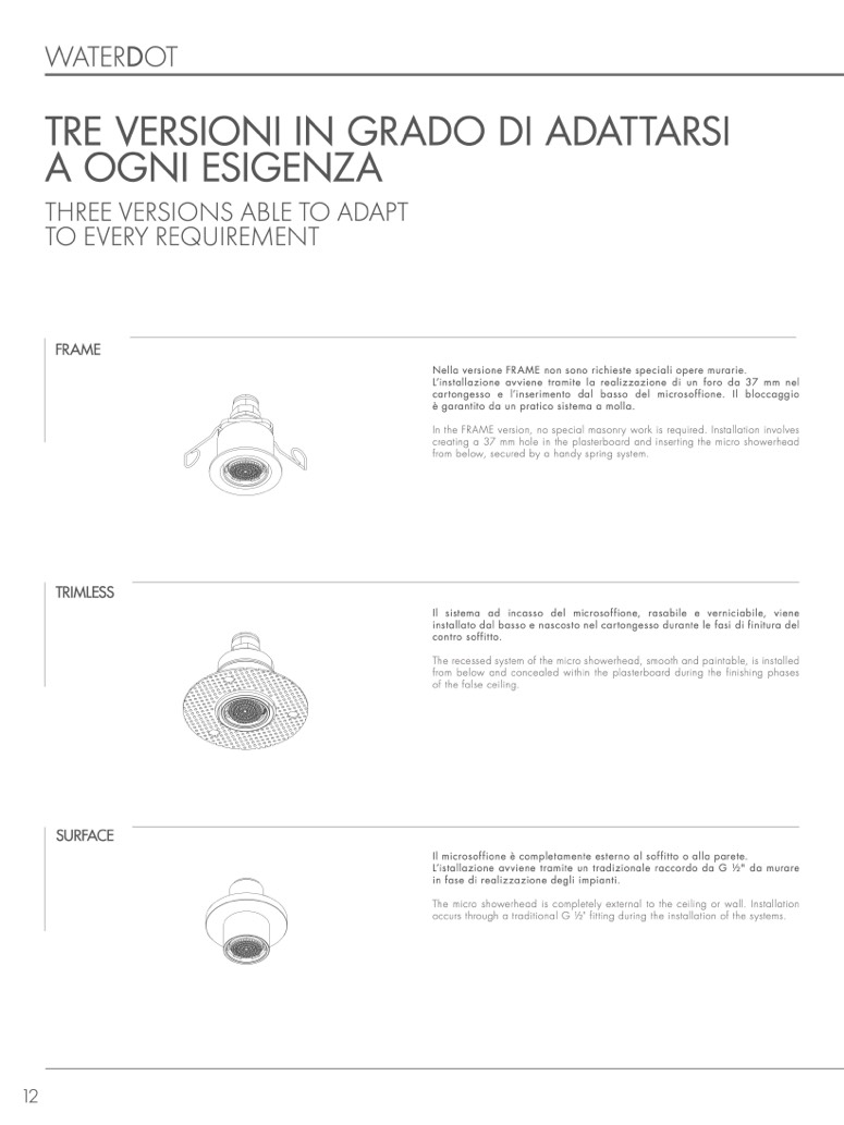 L’istallazione avviene tramite un tradizionale raccordo da G 1⁄2" da murare