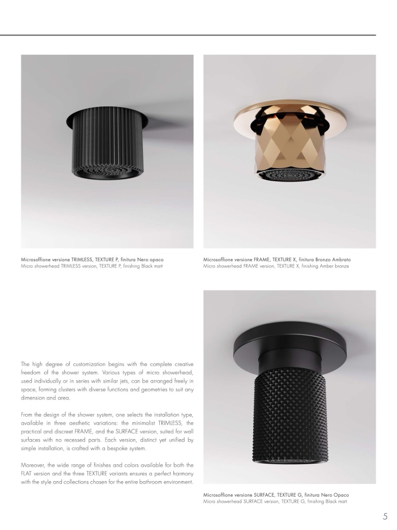 Micro showerhead SURFACE version, TEXTURE G, finishing Black matt