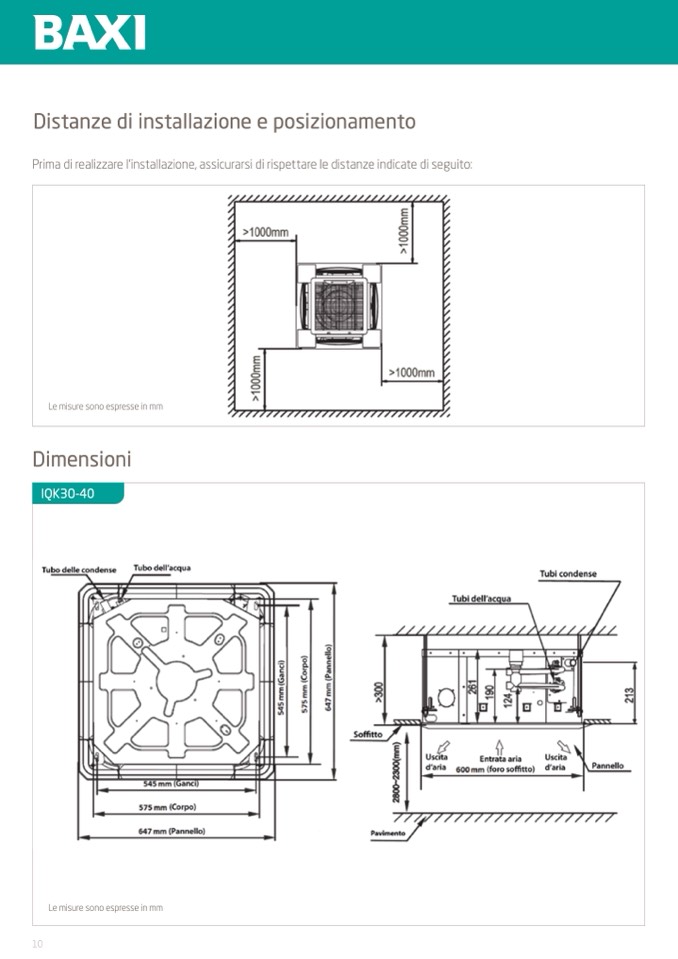 Prima di realizzare l’installazione, assicurarsi di rispettare le distanze indicate di seguito: