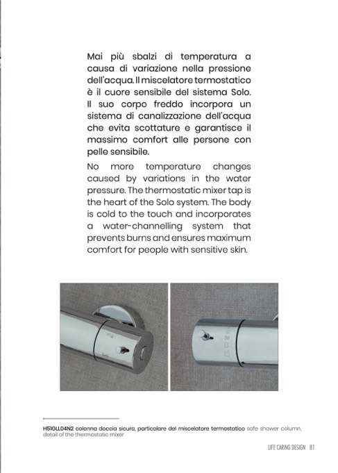 H51GLL04N2 colonna doccia sicura, particolare del miscelatore termostatico safe shower column,