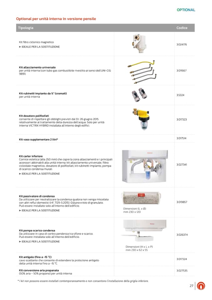 accessori abbinabili alla unità interna: kit allacciamento universale, filtro