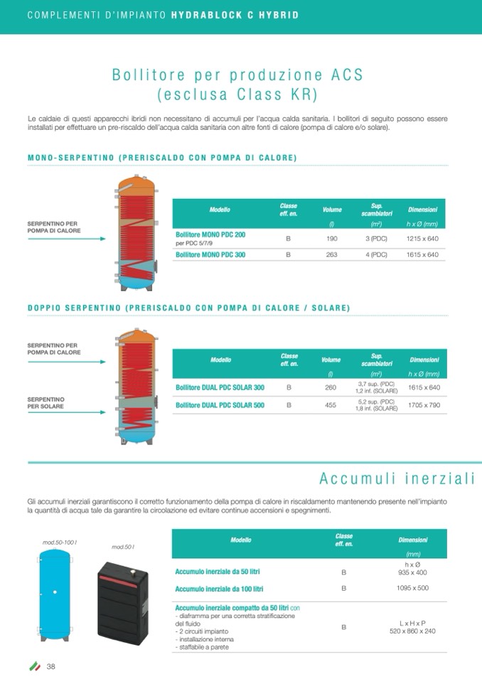 Le caldaie di questi apparecchi ibridi non necessitano di accumuli per l’acqua calda sanitaria. I bollitori di seguito possono essere