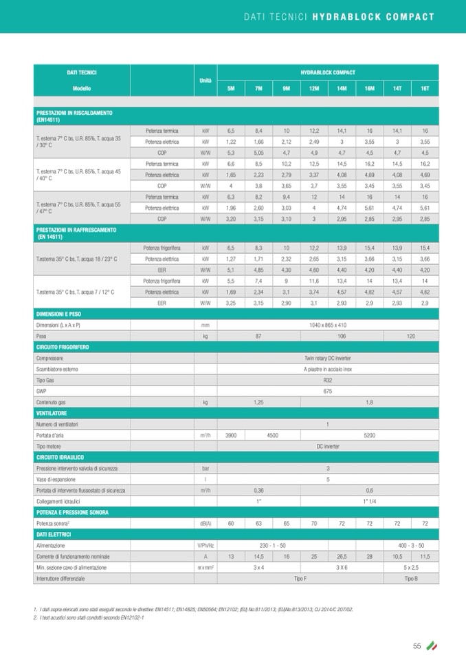 1. I dati sopra elencati sono stati eseguiti secondo le direttive: EN14511; EN14825; EN50564; EN12102; (EU) No:811/2013; (EU)No:813/2013; OJ 2014/C 207/02.