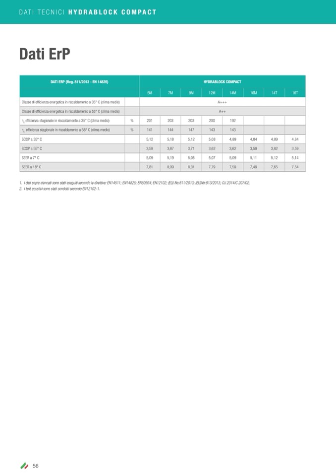 1. I dati sopra elencati sono stati eseguiti secondo le direttive: EN14511; EN14825; EN50564; EN12102; (EU) No:811/2013; (EU)No:813/2013; OJ 2014/C 207/02.