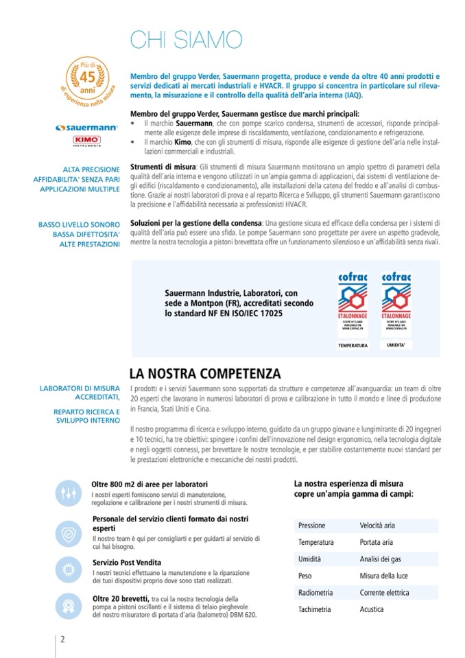 • Il marchio Sauermann, che con pompe scarico condensa, strumenti de accessori, risponde principal-
