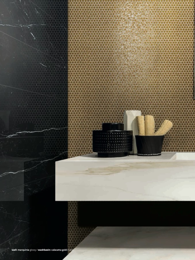 : marquinia glossy / washbasin: calacatta gold matte