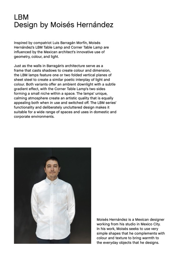 Hernández’s LBM Table Lamp and Corner Table Lamp are