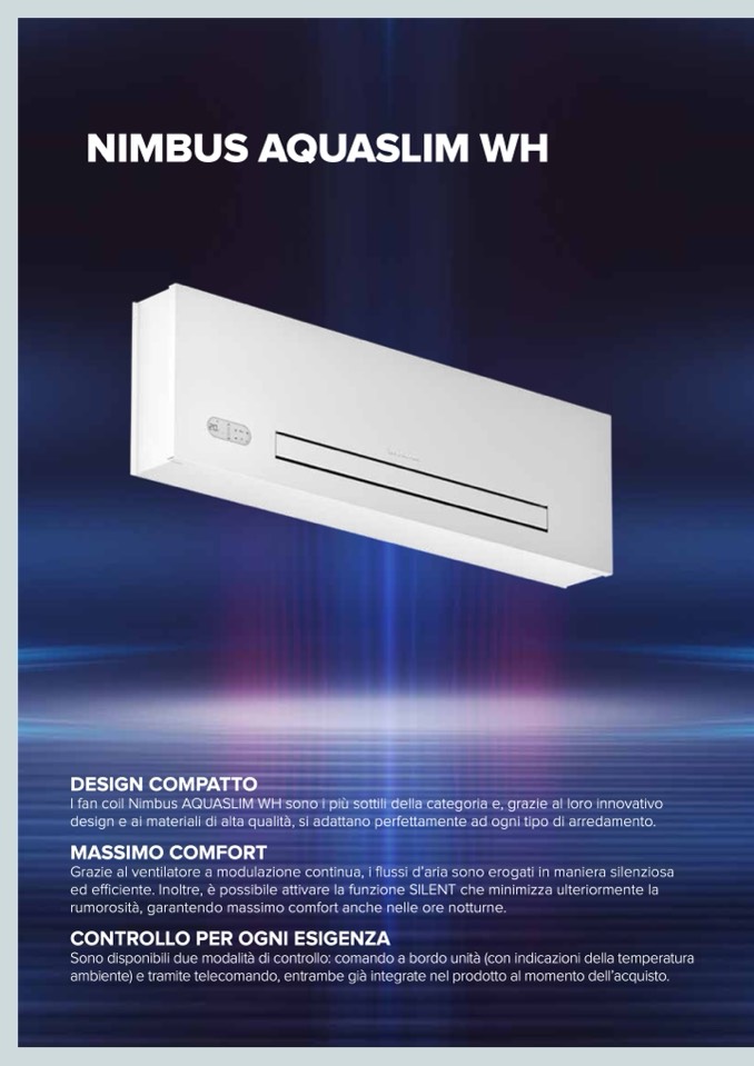 I fan coil Nimbus AQUASLIM WH sono i più sottili della categoria e, grazie al loro innovativo