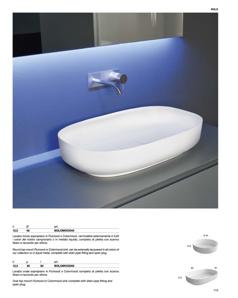 Round top mount Flumood or Colormood sink, can be externally lacquered in all colors of