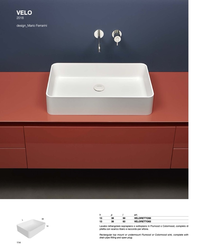 Lavabo rettangolare soprapiano o sottopiano in Flumood o Colormood, completo di