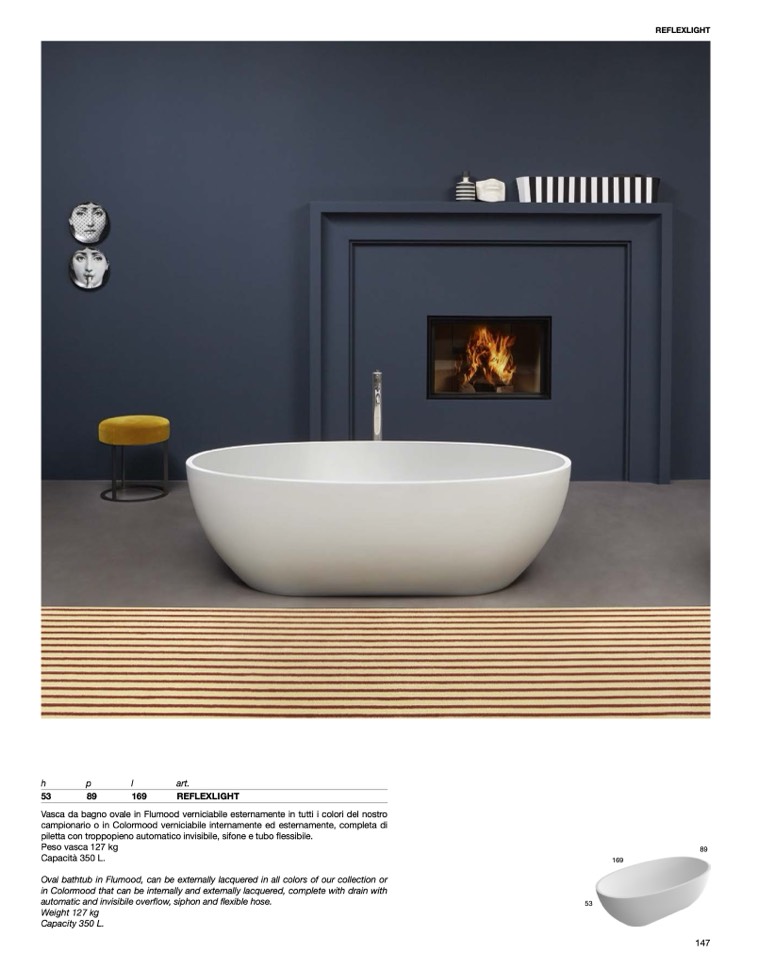 in Colormood that can be internally and externally lacquered, complete with drain with