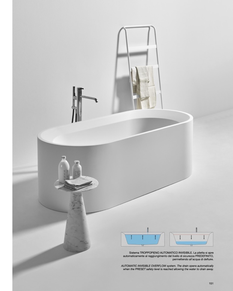 AUTOMATIC INVISIBLE OVERFLOW system. The drain opens automatically