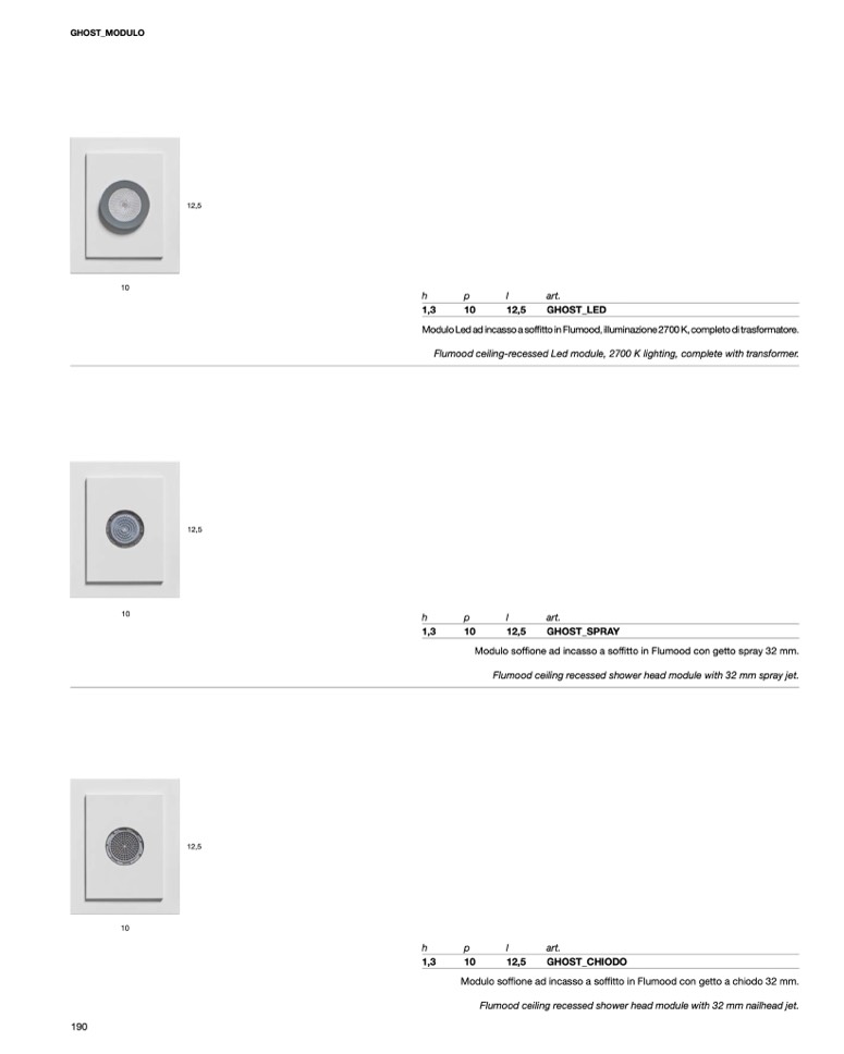 Modulo soffione ad incasso a sof