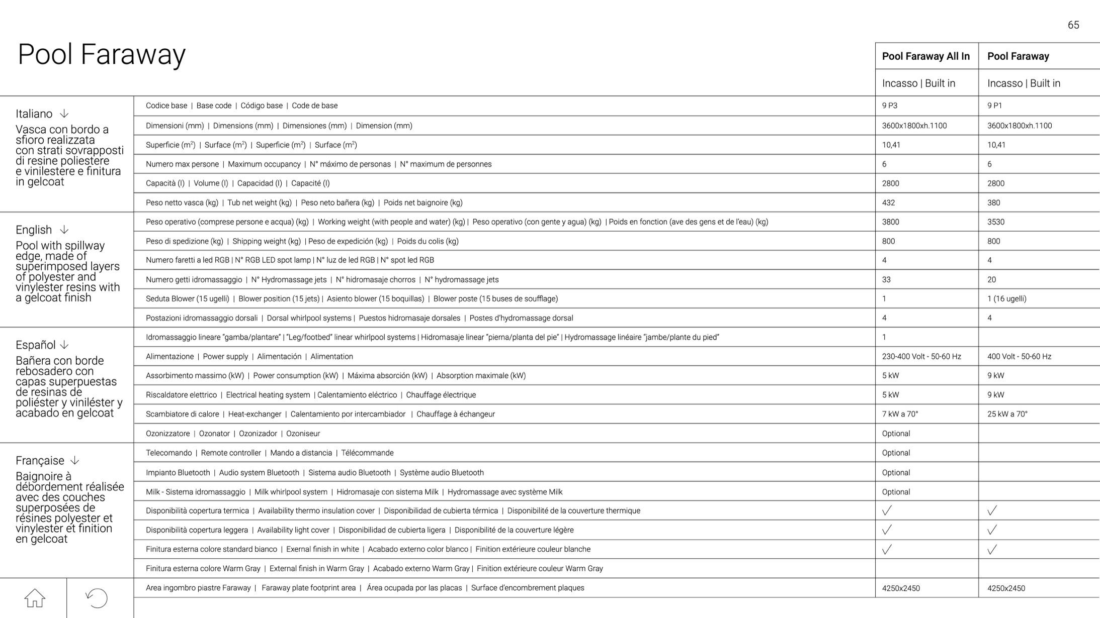 Disponibilità copertura termica | Availability thermo insulation cover | Disponibilidad de cubierta térmica | Disponibilité de la couverture thermique