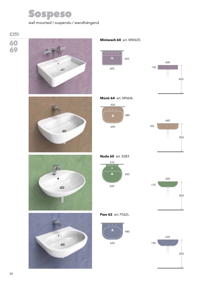 wall mounted / suspendu / wandhängend