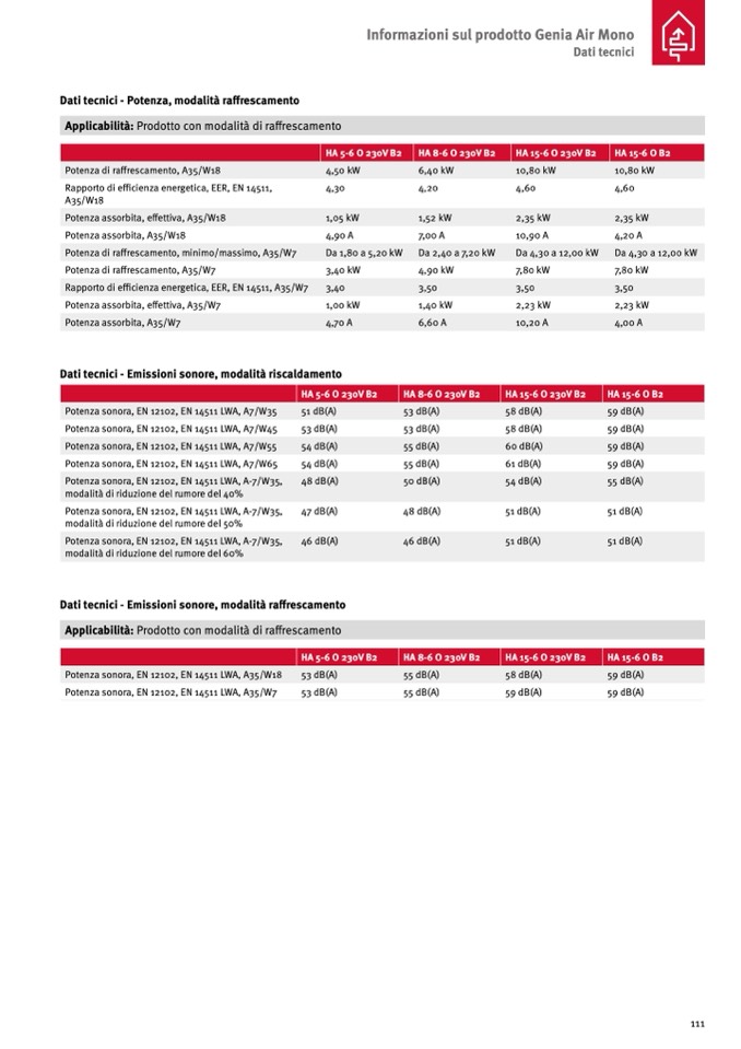 Potenza sonora, EN 12102, EN 14511 LWA, A-7/W35,