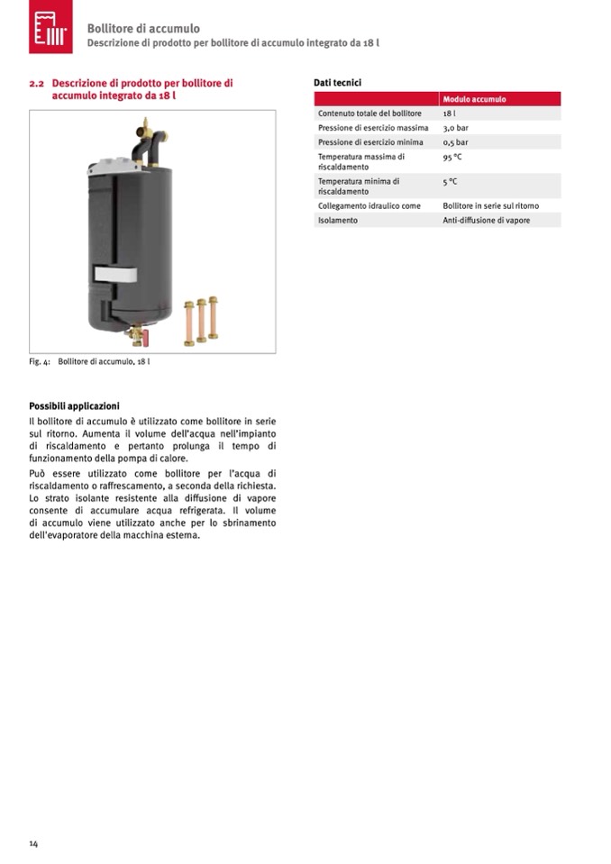 Descrizione di prodotto per bollitore di accumulo integrato da 18 l