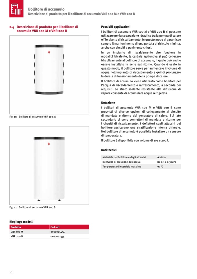 Descrizione di prodotto per il bollitore di accumulo VNR 100 M e VNR 200 B