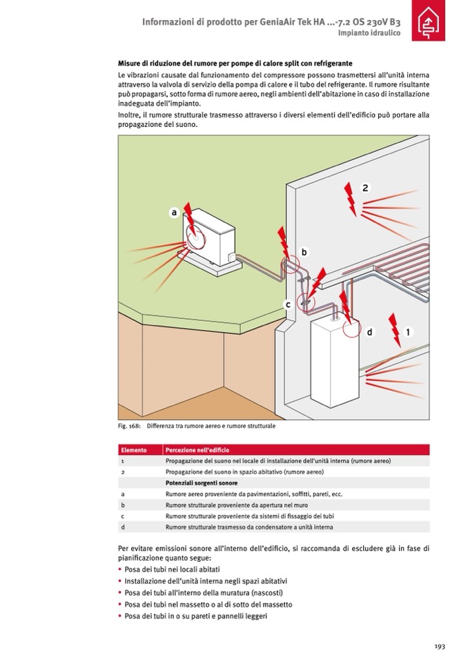 può propagarsi, sotto forma di rumore aereo, negli ambienti dell’abitazione in caso di installazione