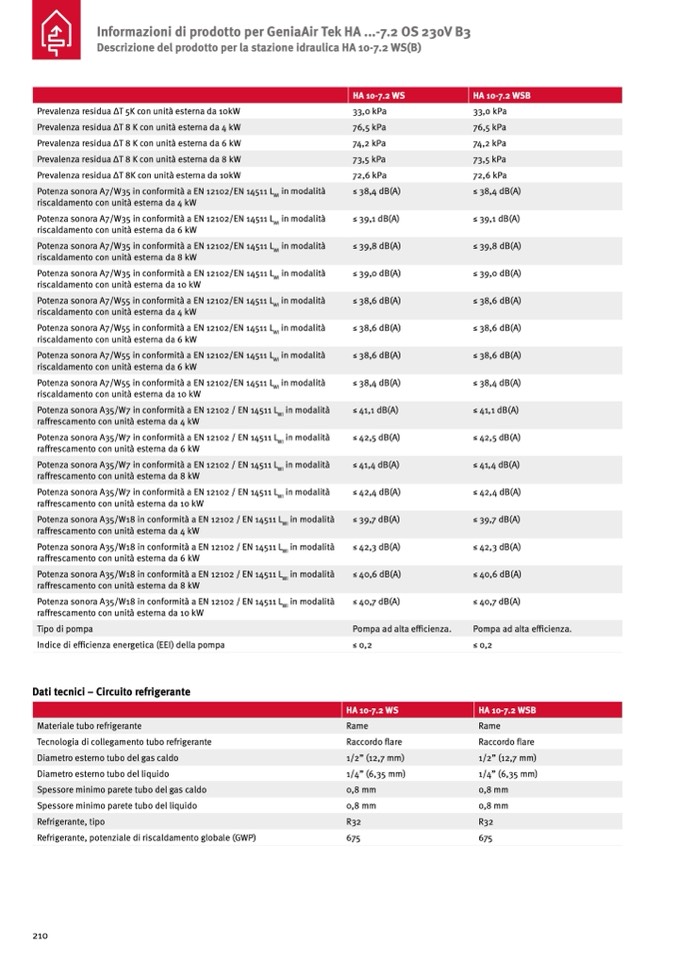 Potenza sonora A7/W35 in conformità a EN 12102/EN 14511 L