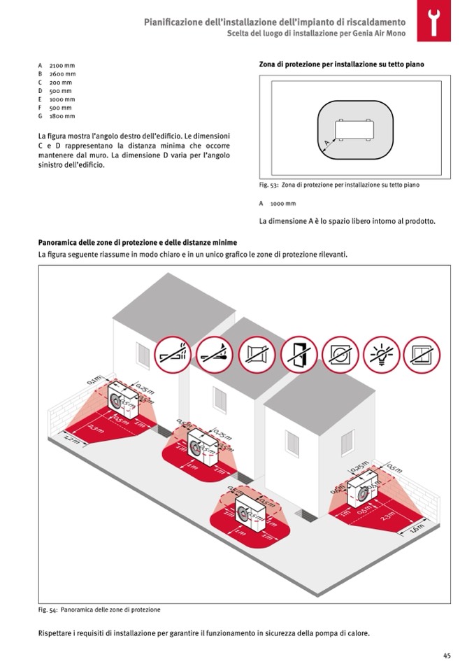 Fig. 53: Zona di protezione per installazione su tetto piano