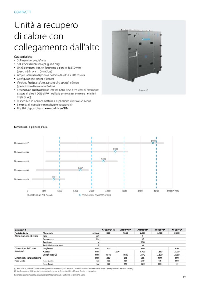 Dimensioni e portate d'aria