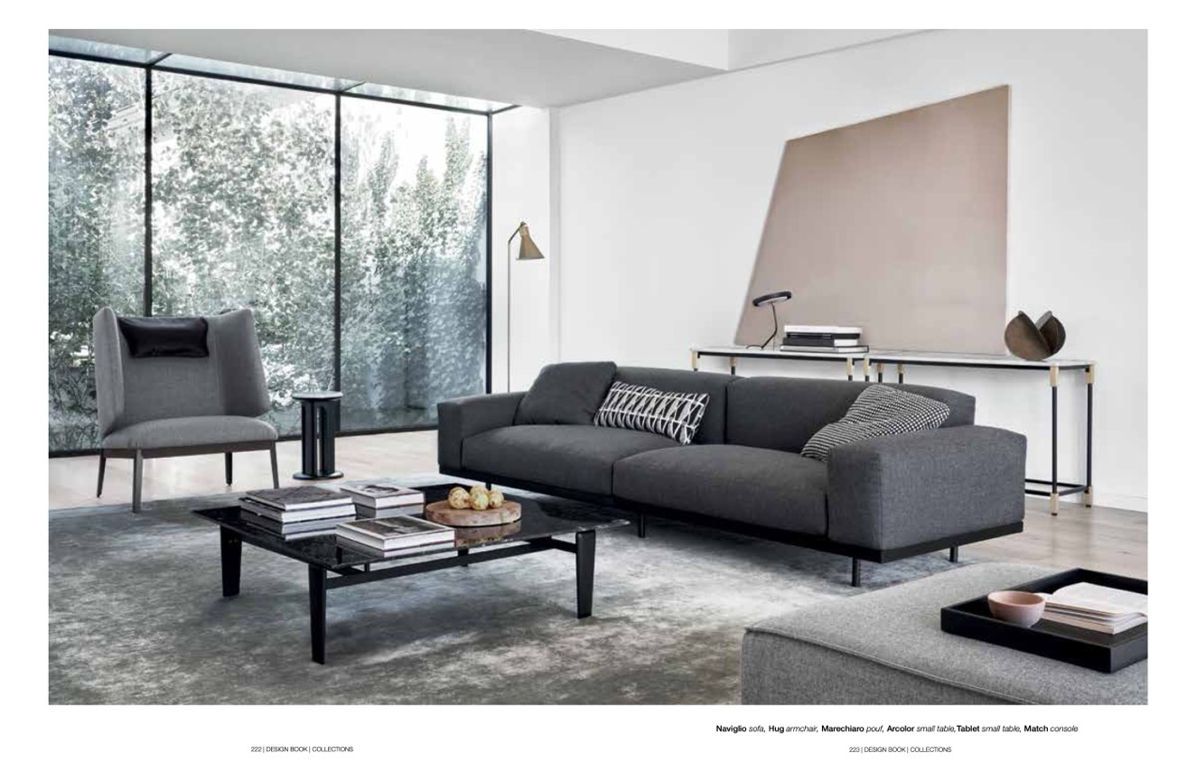 Naviglio sofa, Hug armchair, Marechiaro pouf, Arcolor small table,Tablet small table, Match console
